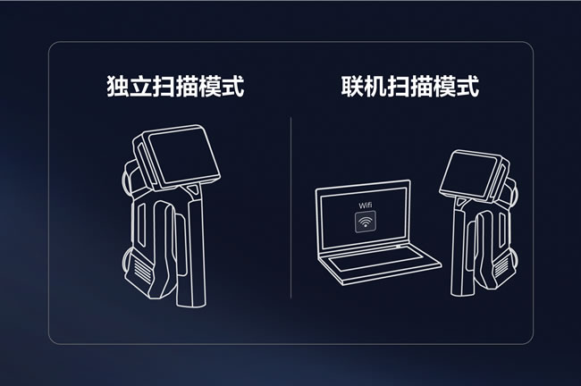 联机扫描模式:设备也可以通过无线/有线连接电脑获取更强算力,进一步提升扫描和检测的效率,在面对大容量数据处理、复杂的尺寸检测或者需要与其他专业软件协同工作的场景时,联机扫描模式能够为用户提供更加全面和高效的解决方案。